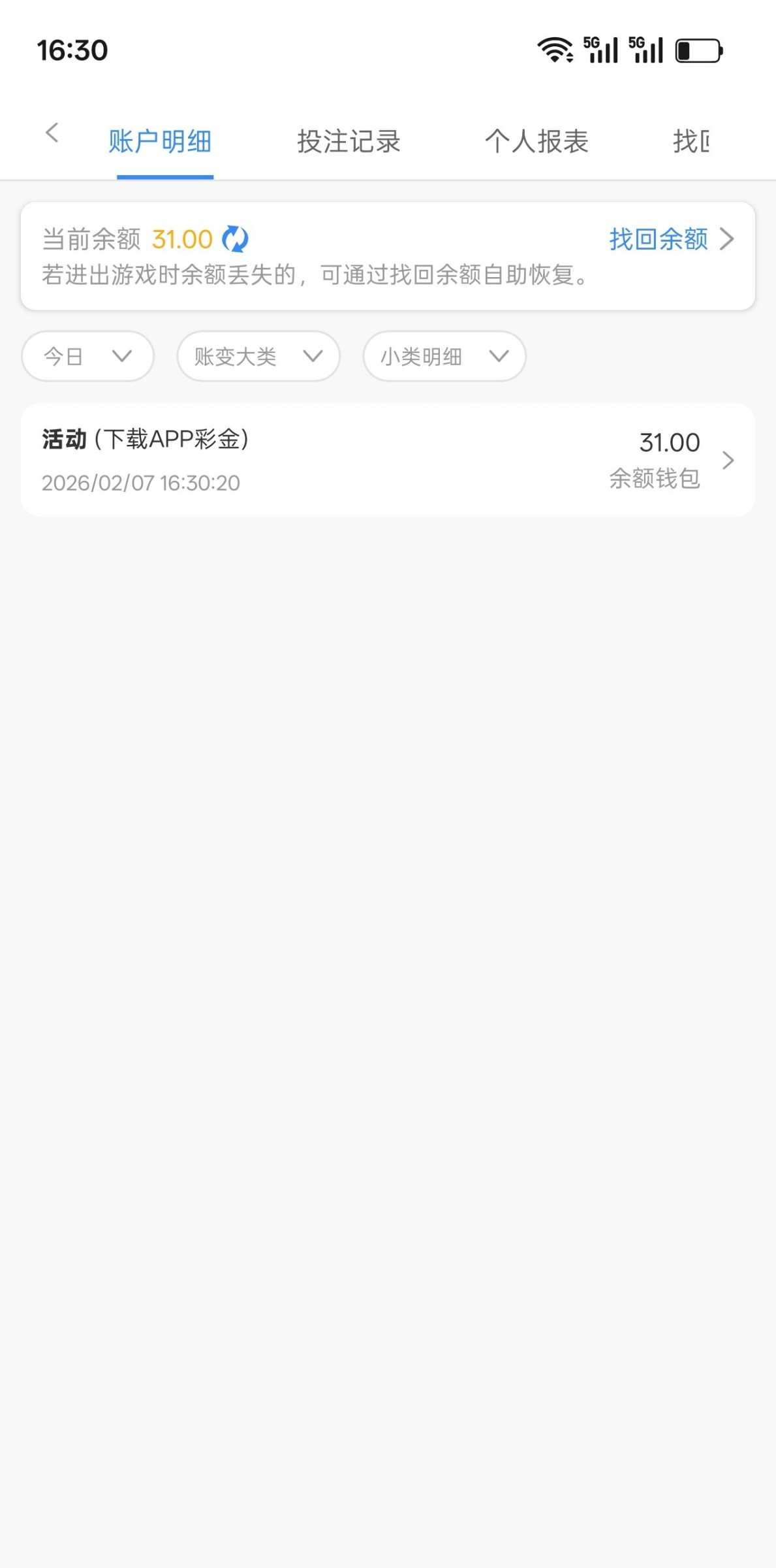 领取了31,没有。打出来