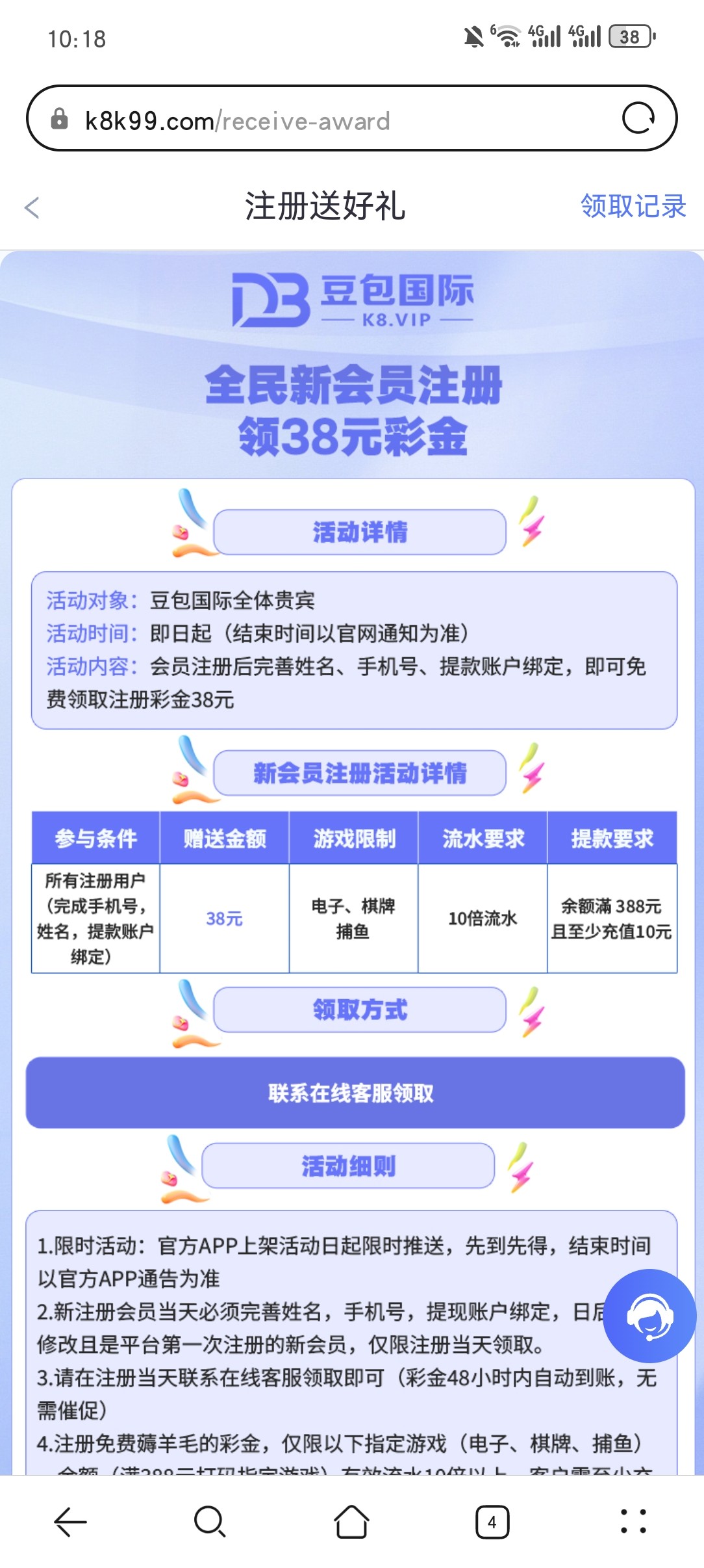 骗注册的。注册了客服来句注册彩金活动结束