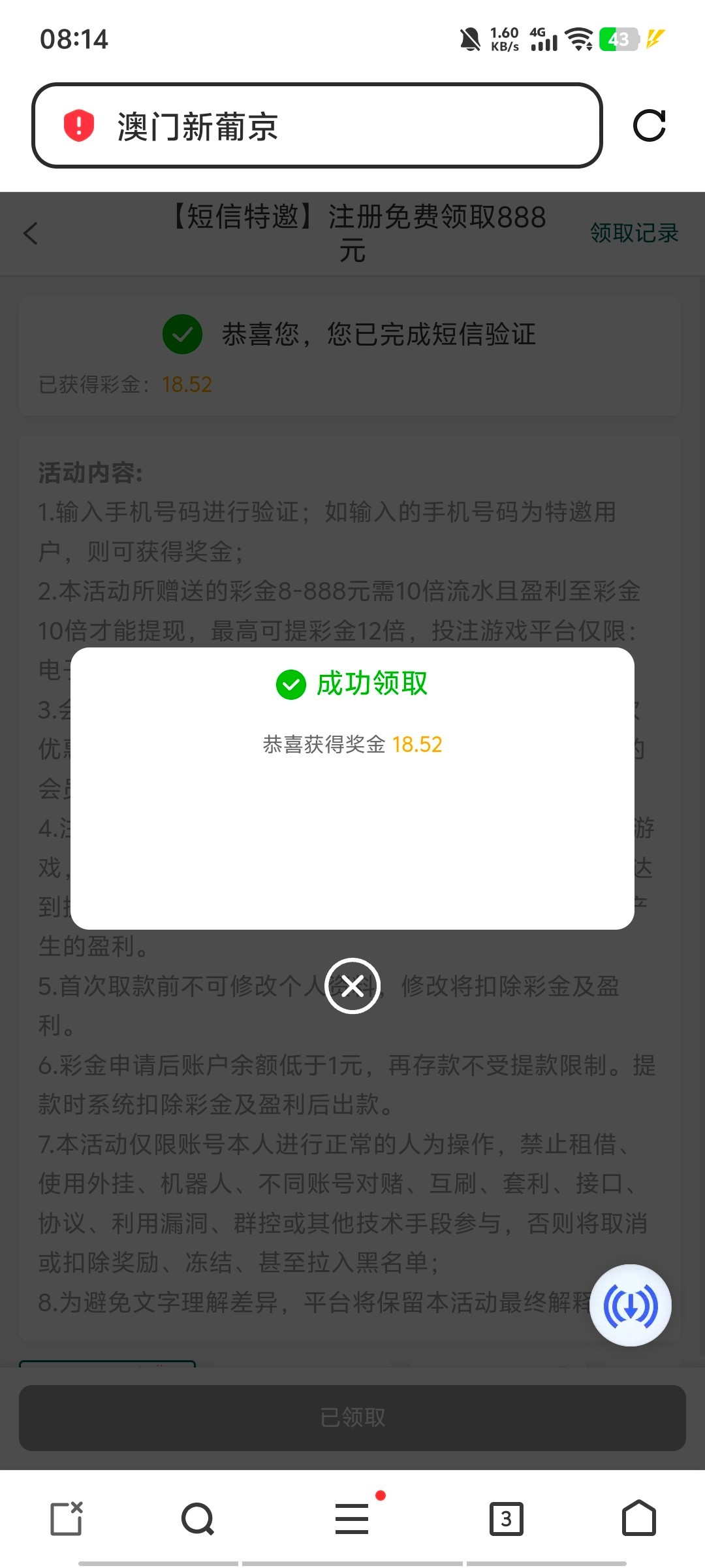 注册去特邀页面接码就领了我领到了,勿充值白嫖就行