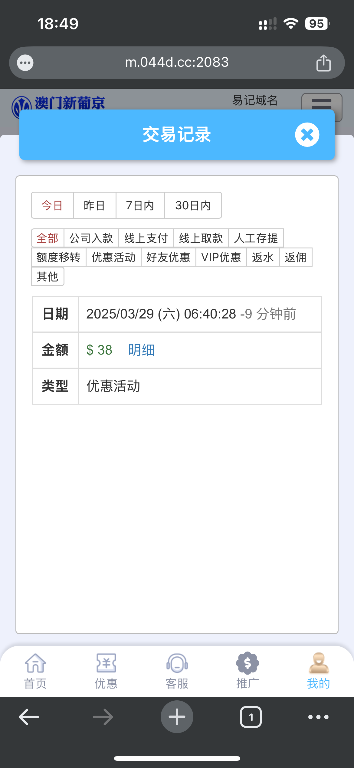 10441.cc 领取38 先去找客服 说回访彩金 绑定好钱能 然后领取 100出款