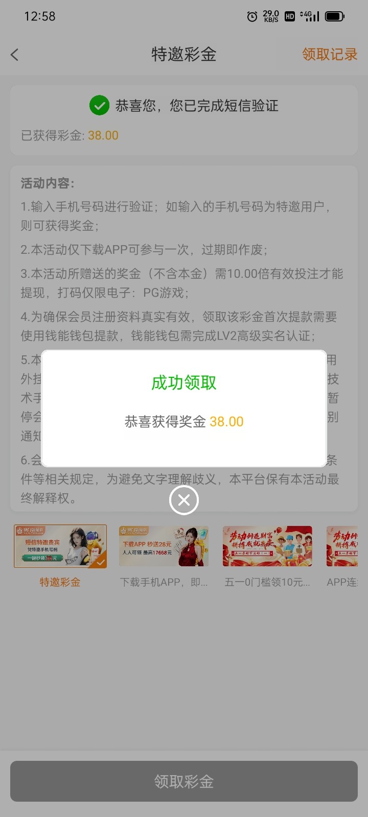 我也是去碰瓷特邀然后没有,就充了10块参加了送28的活动,然后打够提了到账了没有黑,第1次提现只能提钱能